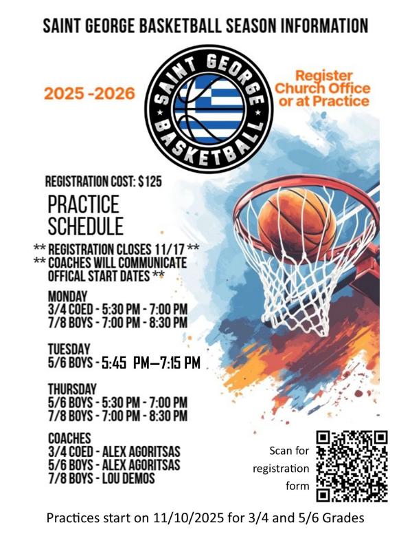 St. George Greek Orthodox Cathedral offers the following athletic/recreational programs to all people of Greek Orthodox descent: